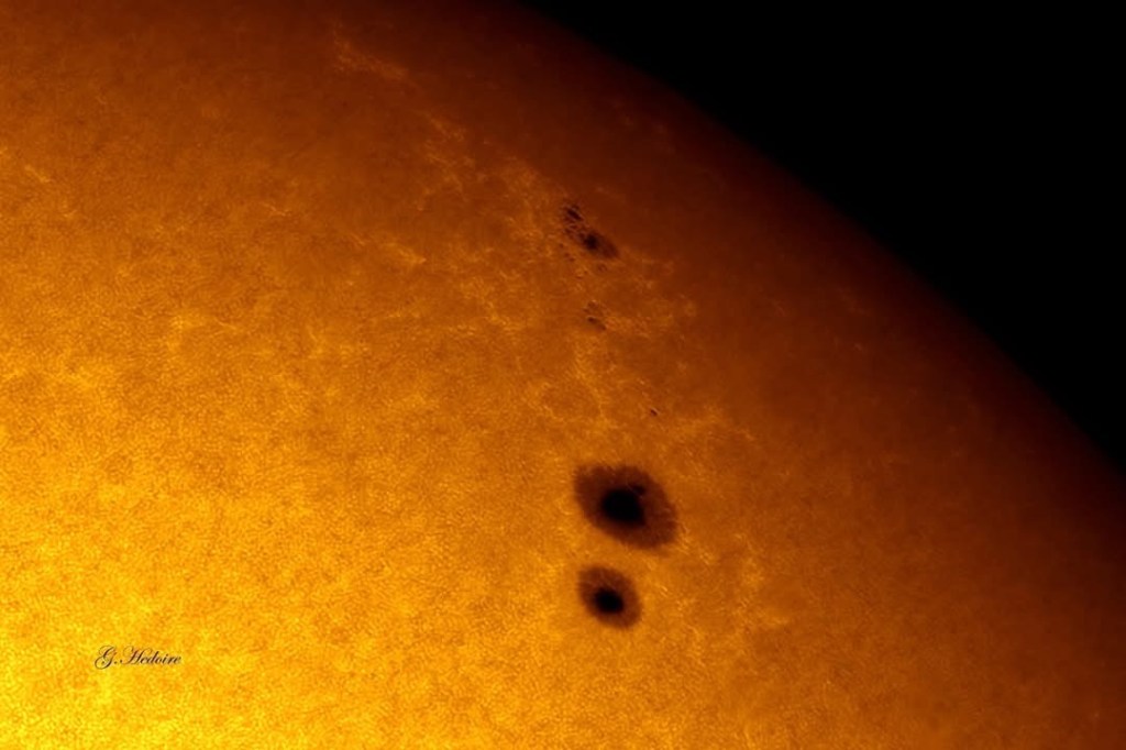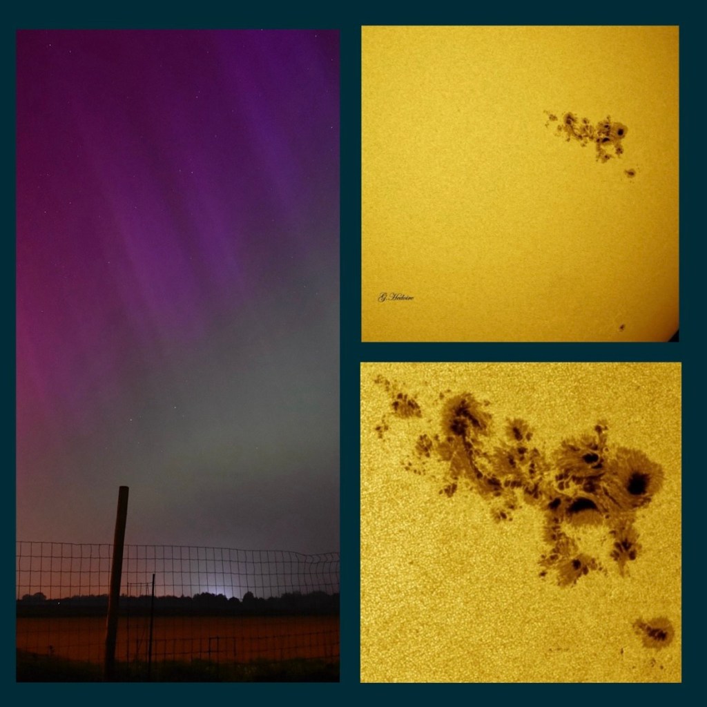 Il est dû à l’éruption des taches solaires AR 13668 et AR 13664 photographiées par Gauthier ce jeudi 9 mai 2024.
