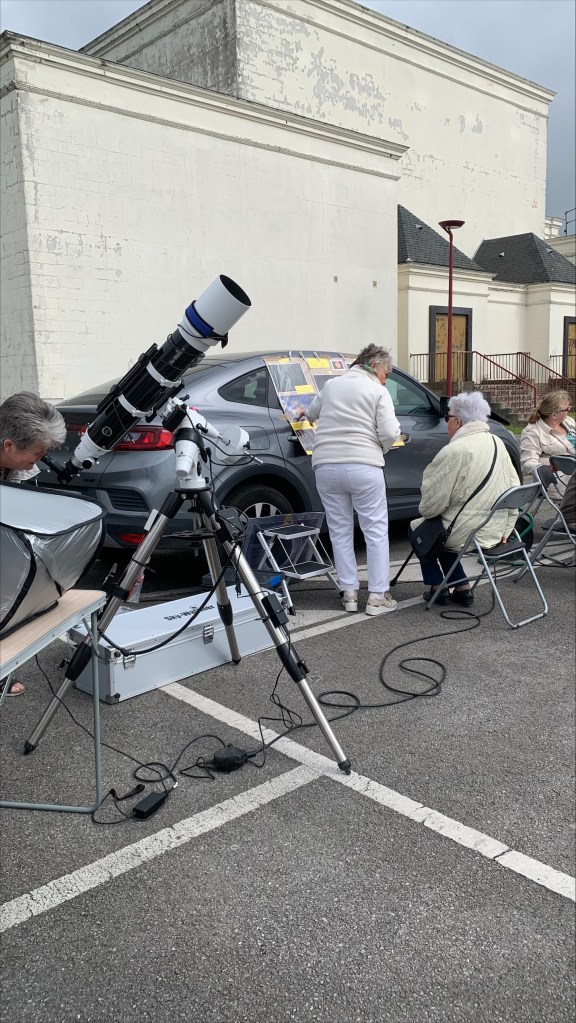 Nous vous avons retrouvés ce samedi 08 juin sur le Parking d’Espace Flandre pour une observation du Soleil. Malheureusement, les instruments à peine installés, les nuages se sont invités et toute observation directe n’a pas pu être possible.