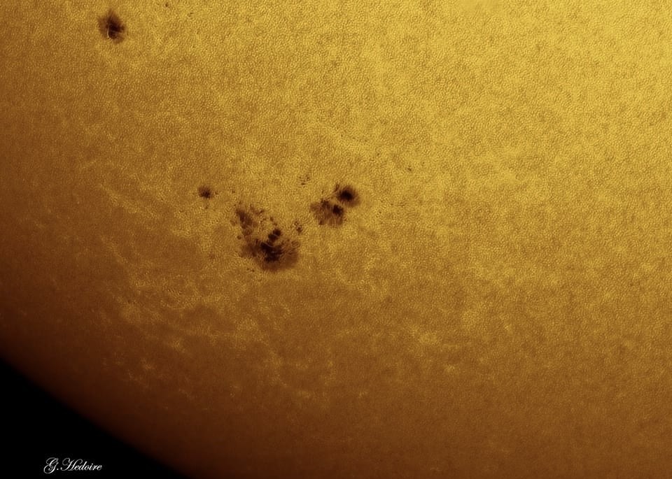 Pour pallier notre déception, voici quelques photos de notre Étoile et de ses taches prises par Gauthier, la veille, le 7 juin.