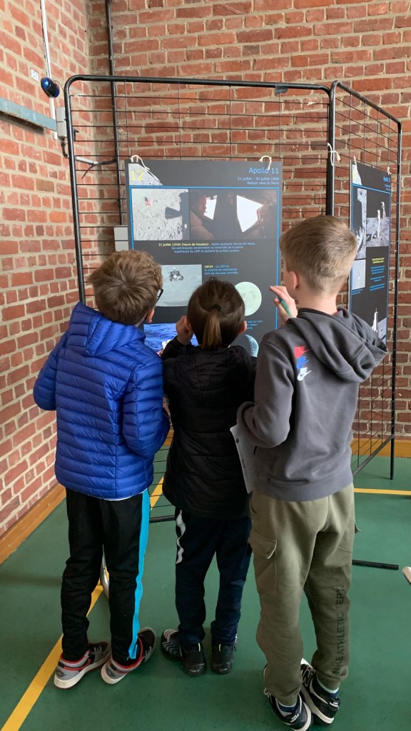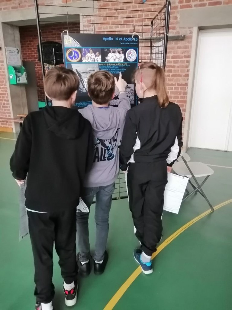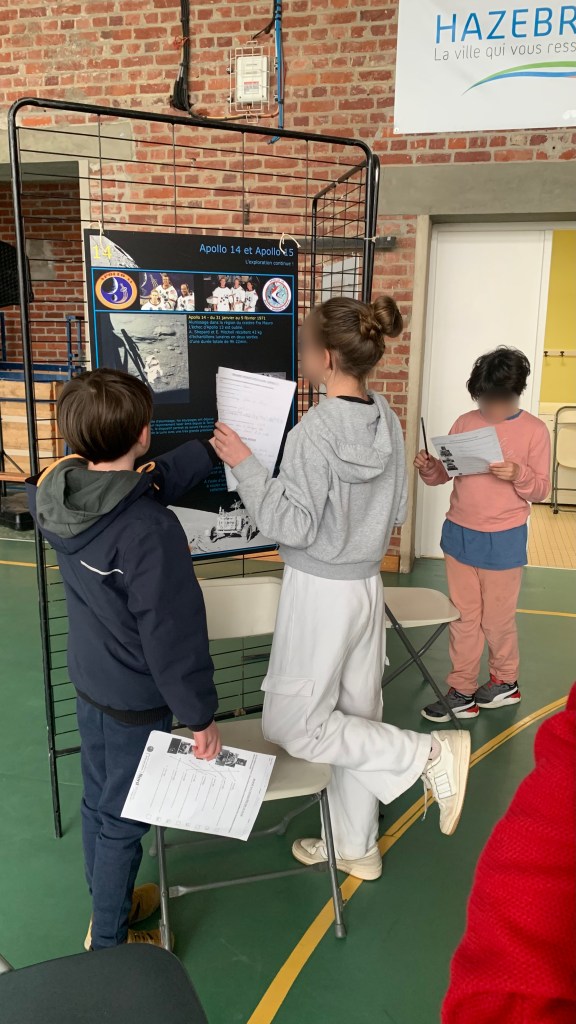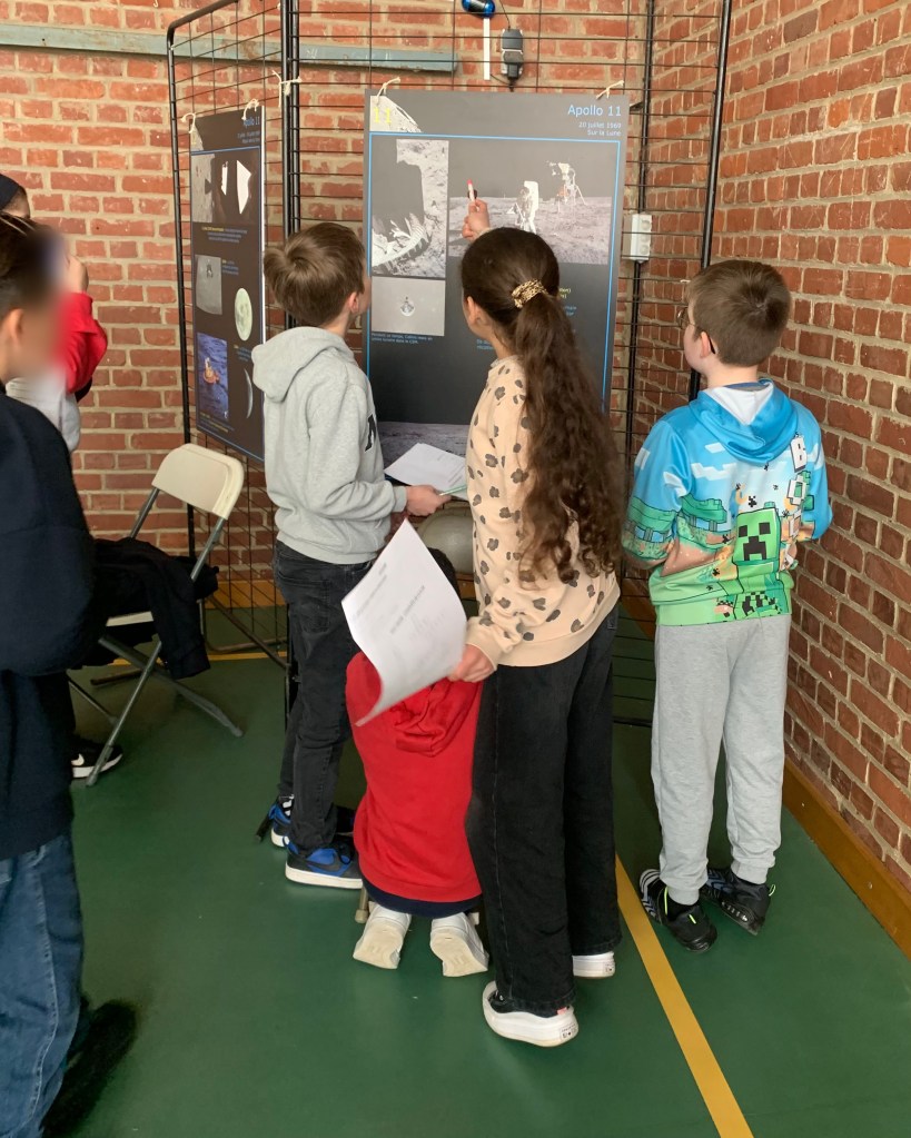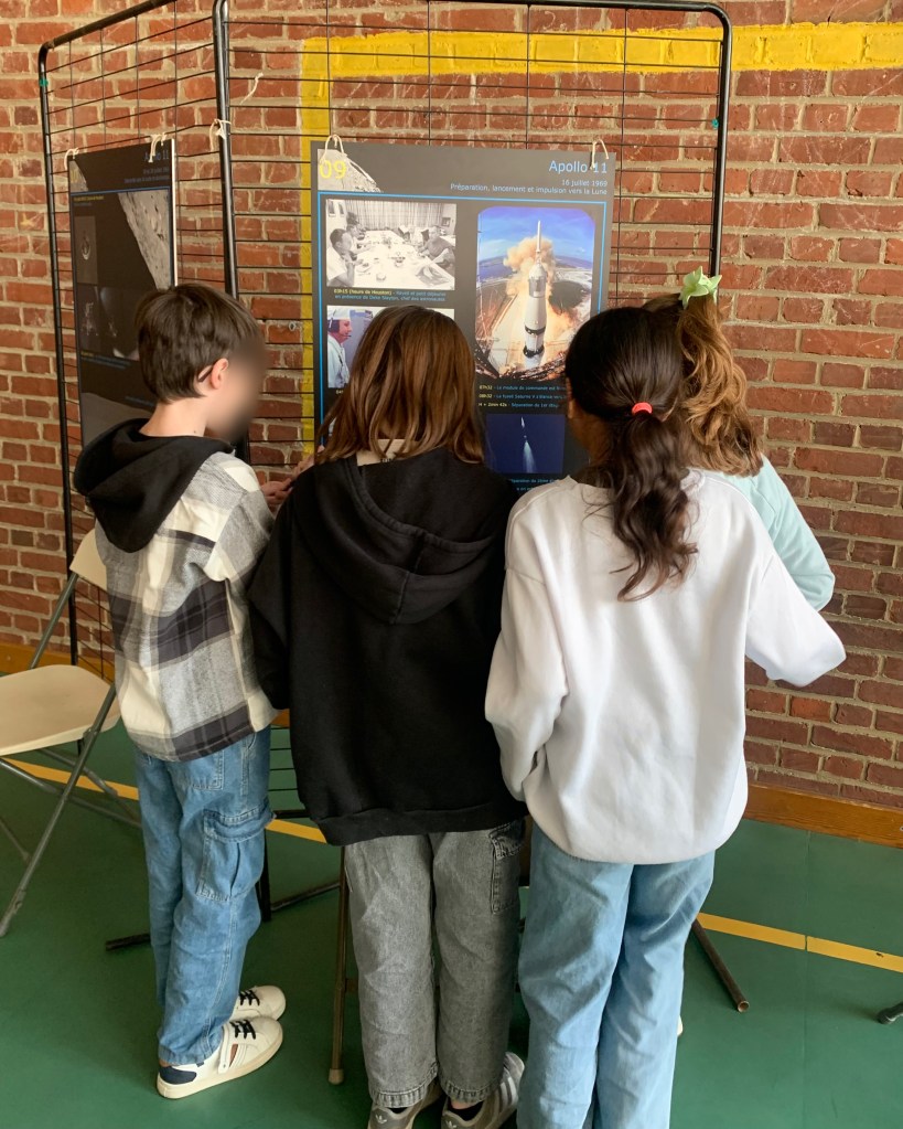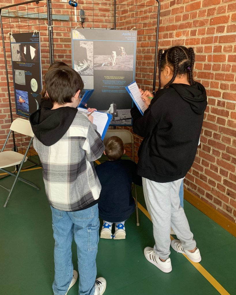 🌕 – Une découverte des missions Apollo, où les élèves ont répondu à des questions en s’appuyant sur des panneaux explicatifs prêtés par le Forum des Sciences. Une manière ludique d’en apprendre plus sur ces expéditions qui ont marqué l’histoire de la conquête spatiale !