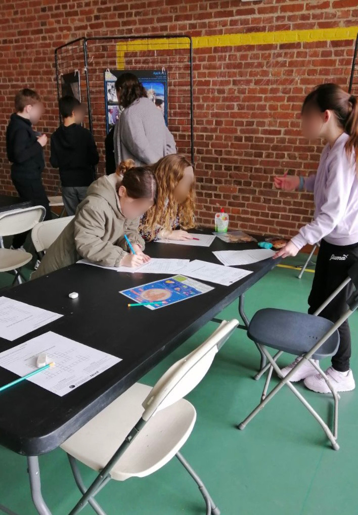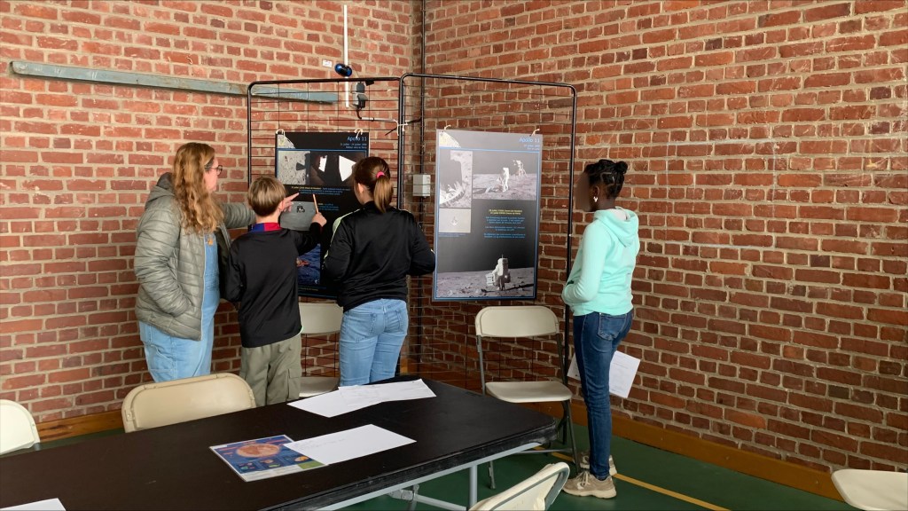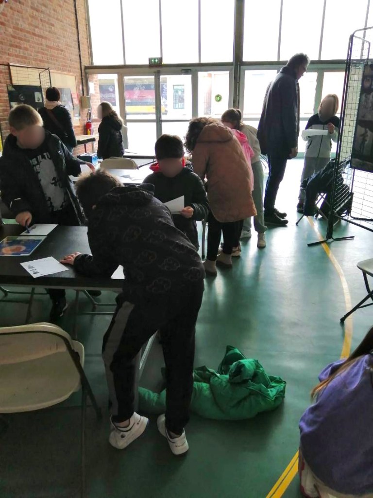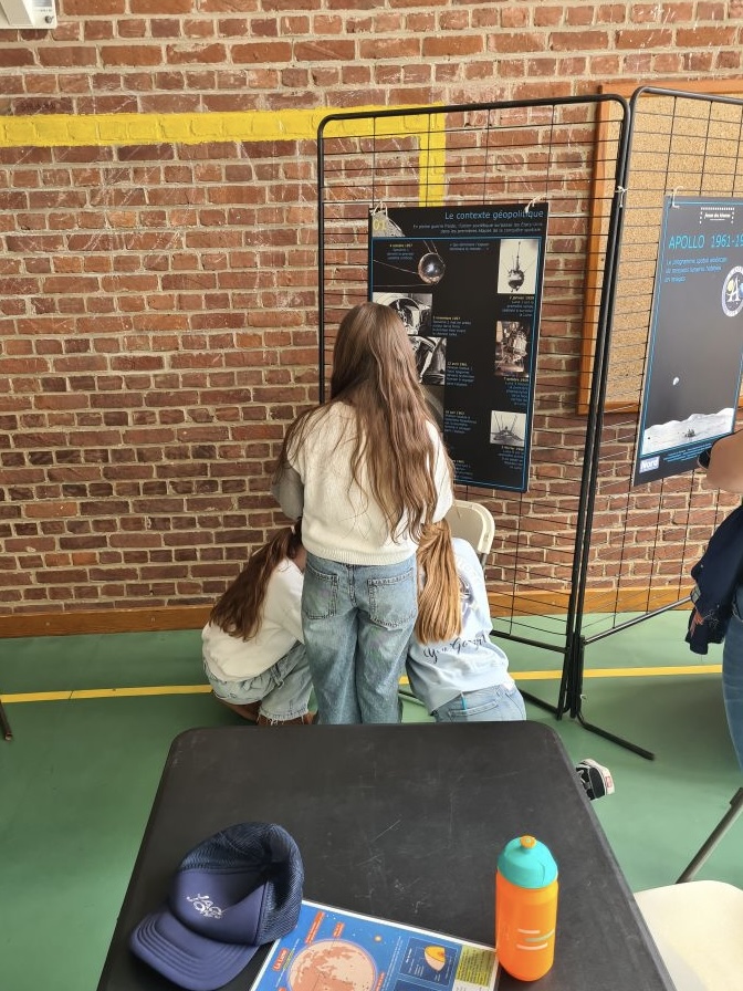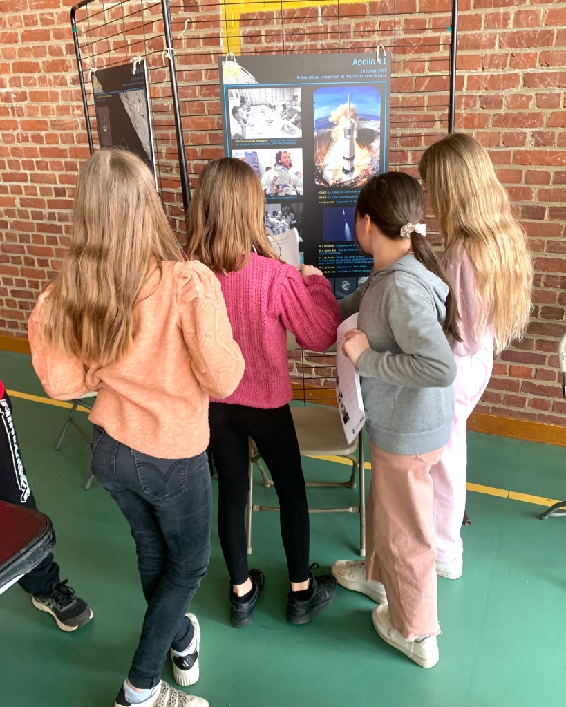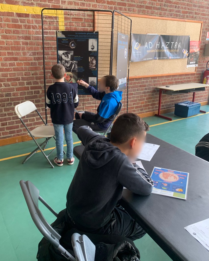 🌕 – Une découverte des missions Apollo, où les élèves ont répondu à des questions en s’appuyant sur des panneaux explicatifs prêtés par le Forum des Sciences. Une manière ludique d’en apprendre plus sur ces expéditions qui ont marqué l’histoire de la conquête spatiale !