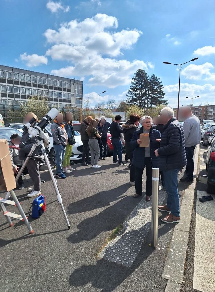 Nous étions aux abords de la cité scolaire des Flandres avec un télescope et une lunette astronomique pour observer cette éclipse partielle. Un grand merci à toutes celles et ceux qui se sont joints à nous pour cet instant d’observation ! ![]()