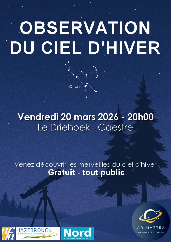 À cette période de l’année, le ciel d’hiver nous offre ses plus beaux trésors. Ce sera l’occasion d’admirer notamment la célèbre constellation d’Orion, les amas d’étoiles, les nébuleuses et bien d’autres merveilles visibles au télescope.