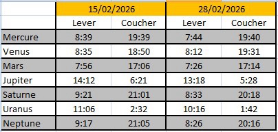 - 27 février – la Lune près de Jupiter : Le 27 février, la Lune éclairée à 80 % sera proche de Jupiter (mag −2,4) dans le ciel. La distance entre les deux objets sera de 3°54′. Observez-les à l’œil nu ou avec des jumelles dans la constellation des Gémeaux.